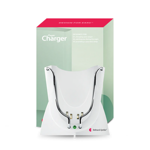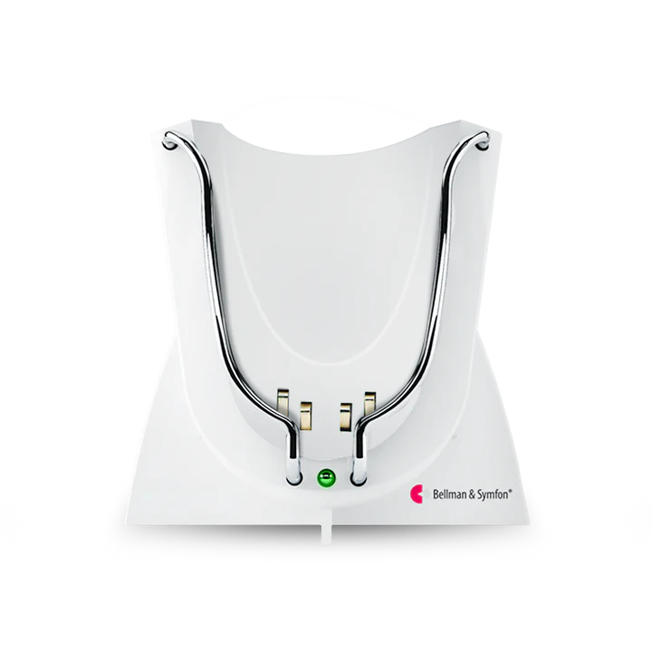 The Pager Charger from Bellman & Symfon is a convenient charging dock designed specifically for use with the Visit Pager Receiver. Simply place your Pager Receiver equipped with a rechargeable battery onto the charger. A green LED light indicates charging is in progress and turns off when charging is complete. For added functionality, the charger features a port for the optional Bed Shaker (sold separately). When connected, the Bed Shaker will vibrate to alert you to incoming signals from Visit transmitters, even while the Pager is charging—ideal for nighttime alerts or when resting.