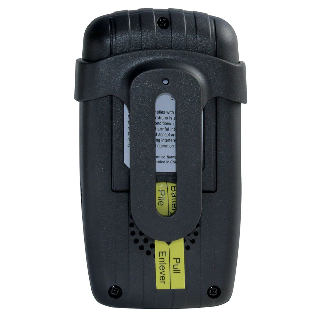 Strong, unique vibrations, loud audio tones, bright flasher, and Braille buttons for full accessibility