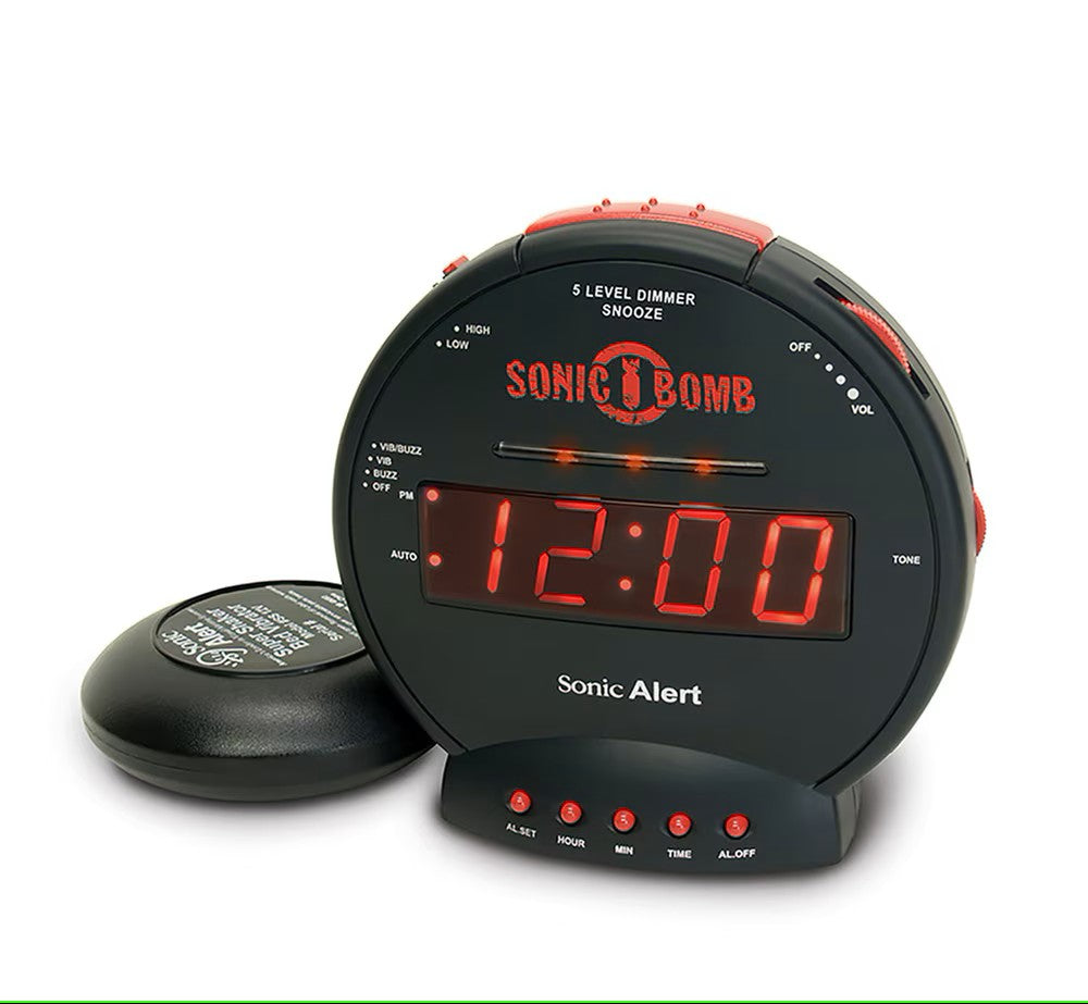 Best-Seller! The Sonic Bomb Alarm Clock is trusted by heavy sleepers and the Deaf and Hard of Hearing community for one reason, it works. With an adjustable 113 dB extra-loud alarm, super bright built-in strobe lights, and the industry-leading 12V bed shaker, this alarm ensures you never oversleep again.